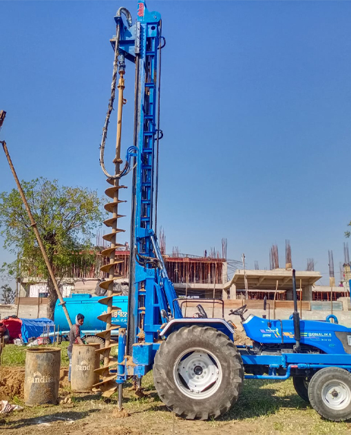 - Positioning of Tractor : The tractor is maneuvered into position at the location where the piles are to be installed. Careful attention is paid to ensure that the tractor is stable and properly aligned for driving the piles.